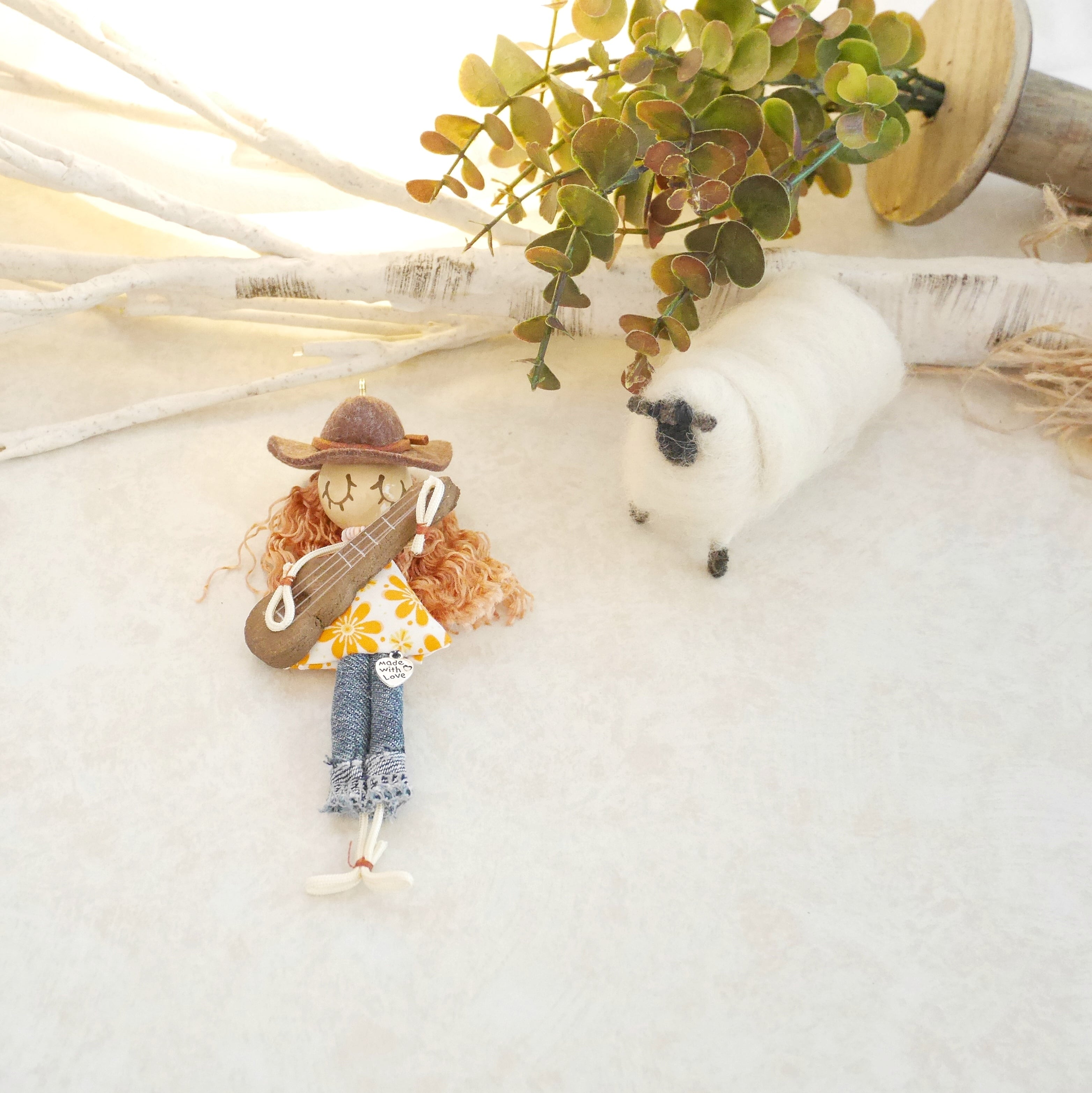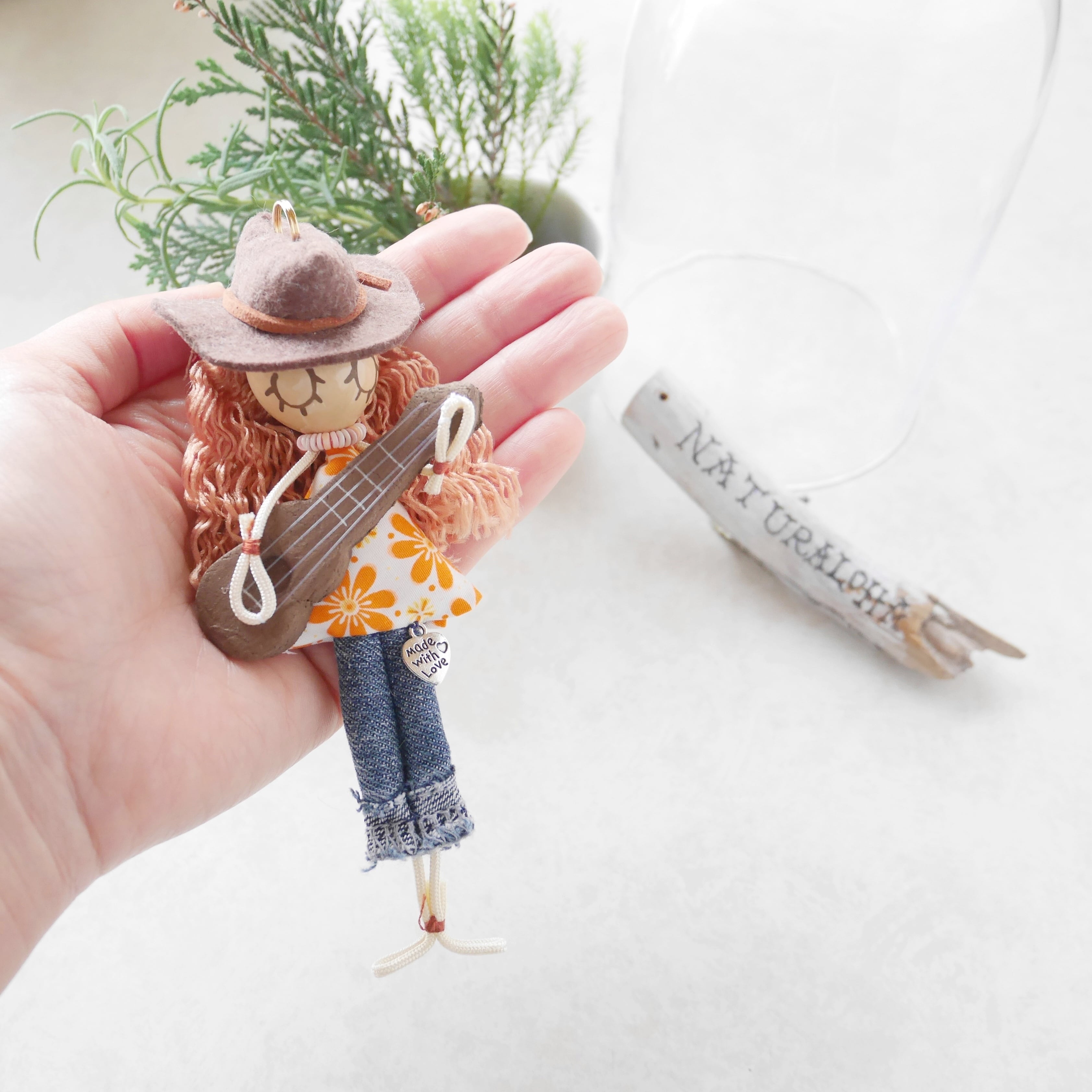 このドールは私自身が出会ったハワイの格言「歌は歌い手にきめさせなさい」から「自分の道を自分で決めていこう」という勇気をもらい出来上がったドールです。だからウクレレガールは「あなたの歌(=道)」を奏でるお守りのようなドール。毎日忙しい中で頑張っているみなさんをウクレレガールが近くで応援しています♪アナタの毎日にあなたならではの自由なメロディを奏でましょ♡