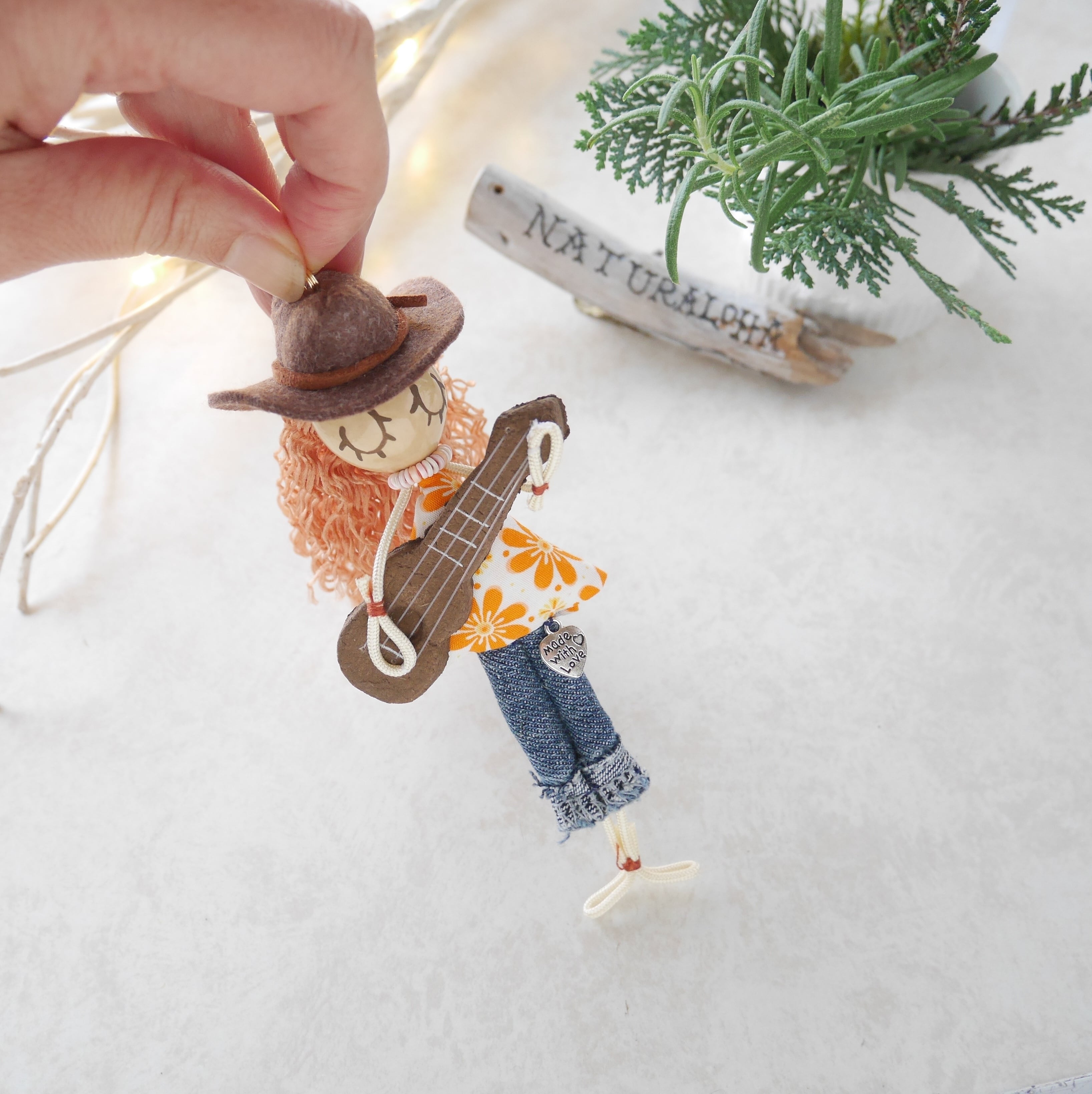 new*【秋冬限定ウクレレドール】ハットを被ったククイナッツのウクレレガール(デイジー)