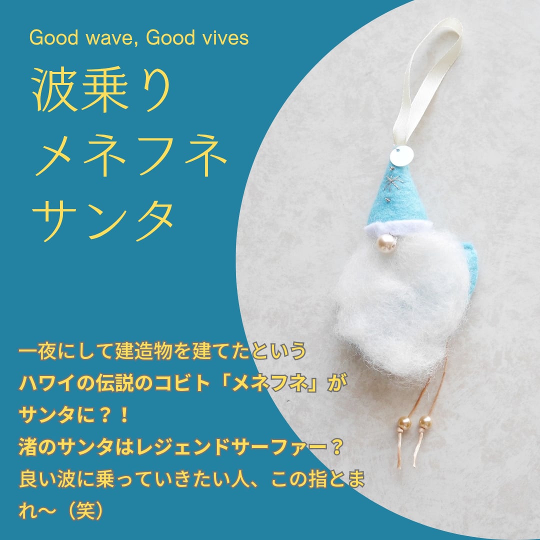 →ハワイの伝説のコビト〈メネフヌ〉がサンタさんに!?渚のサンタはレジェンドサーファーだとか??来年に向けて良い波乗っていきましょ〜♪