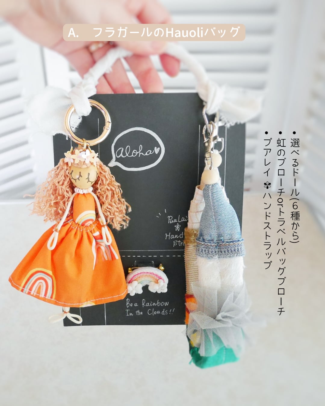 ドールチャーム、ブローチ、ハンドストラップはどれも1点ものとなります。