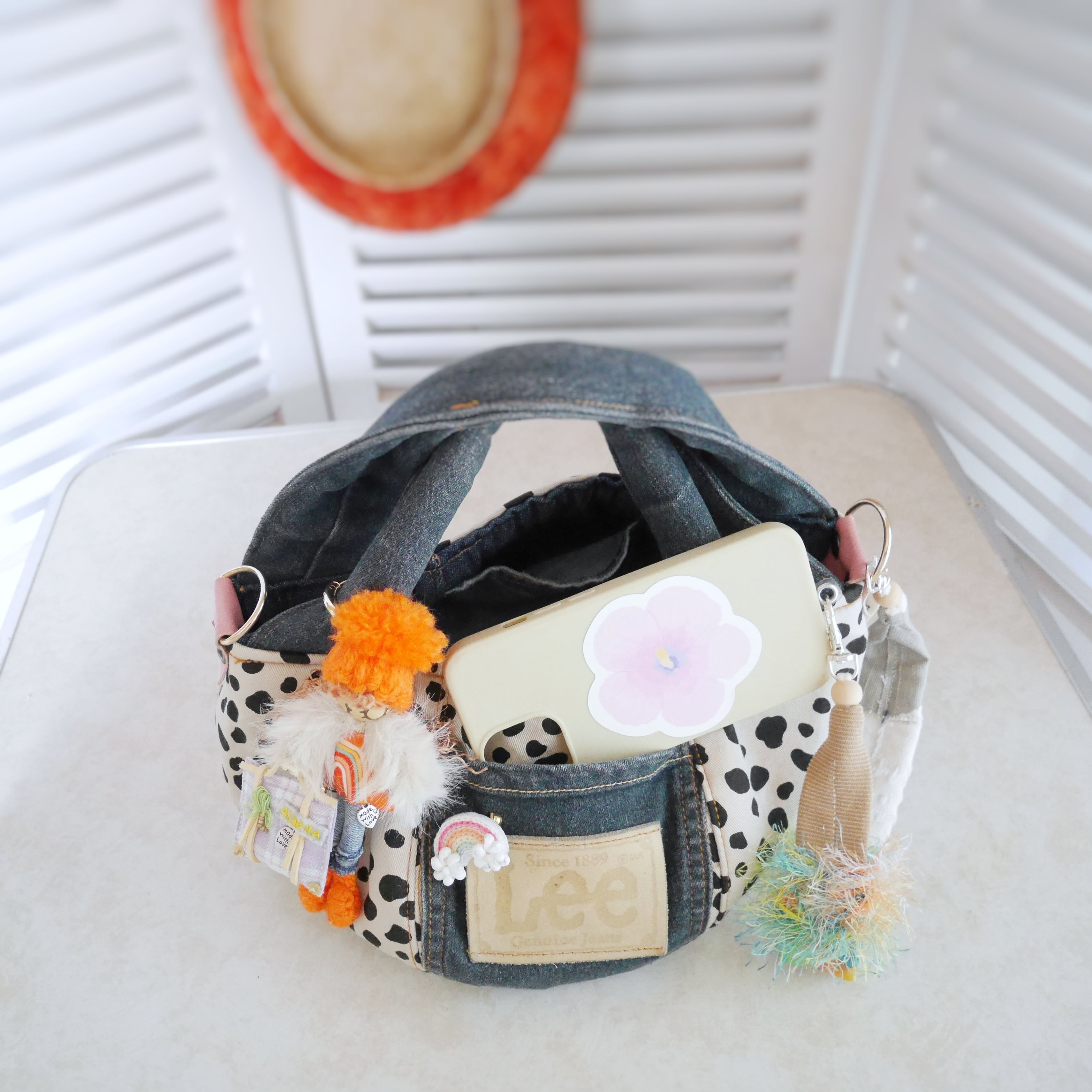 ・デニムやファブリックは切りっぱなしをラフに縫い合わせています。ホツレ部分も味わいとしてお愉しみください。使用していく内にホツレが気になる際はカットして頂くことも可能です。