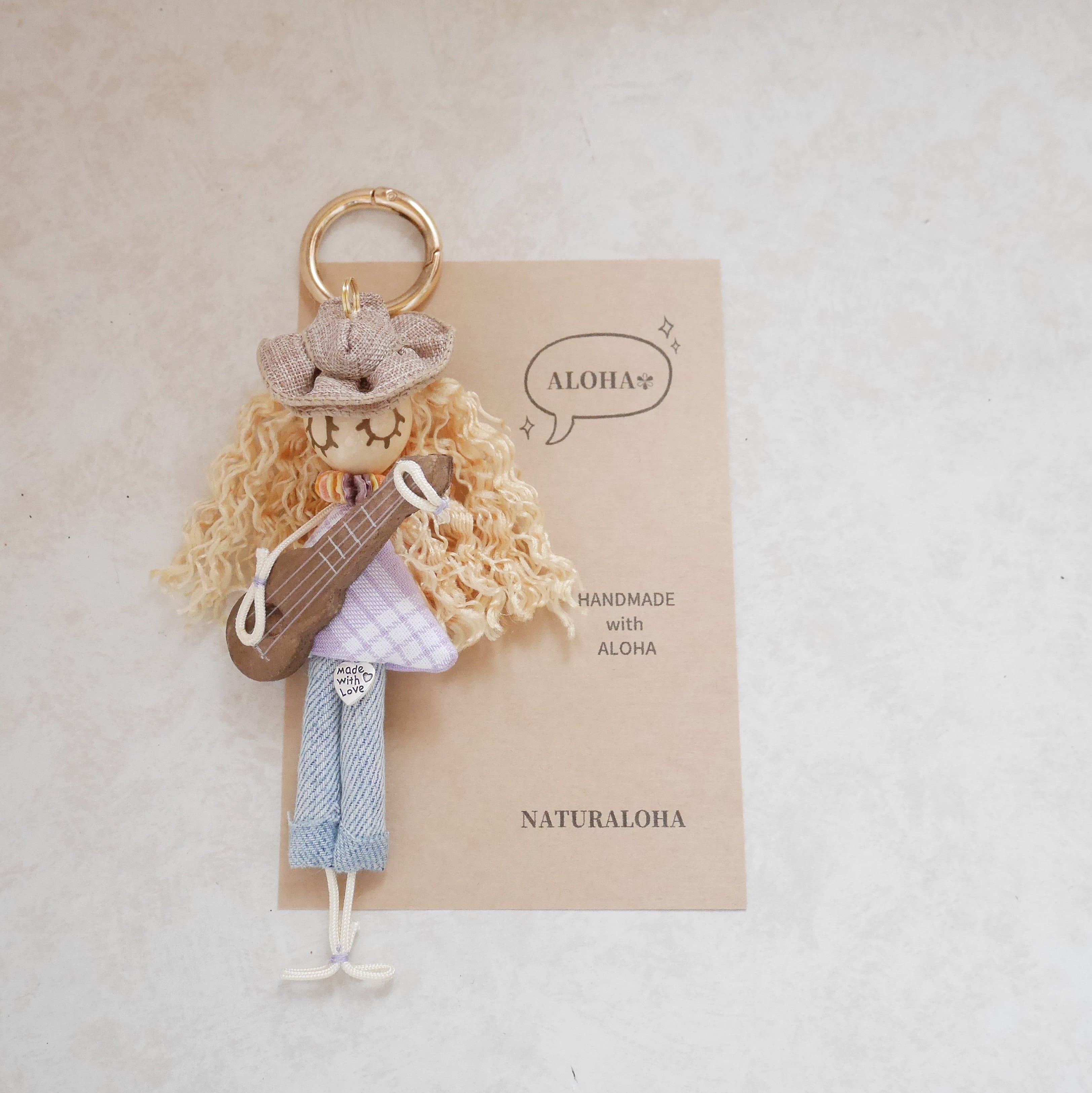 カラフルで手作りならではの温かい雰囲気。多くの人に愛されるハワイアンカルチャー「ウクレレ」&「ハワイアンミュージック」をいつも身近に感じていただけるドールチャームです。