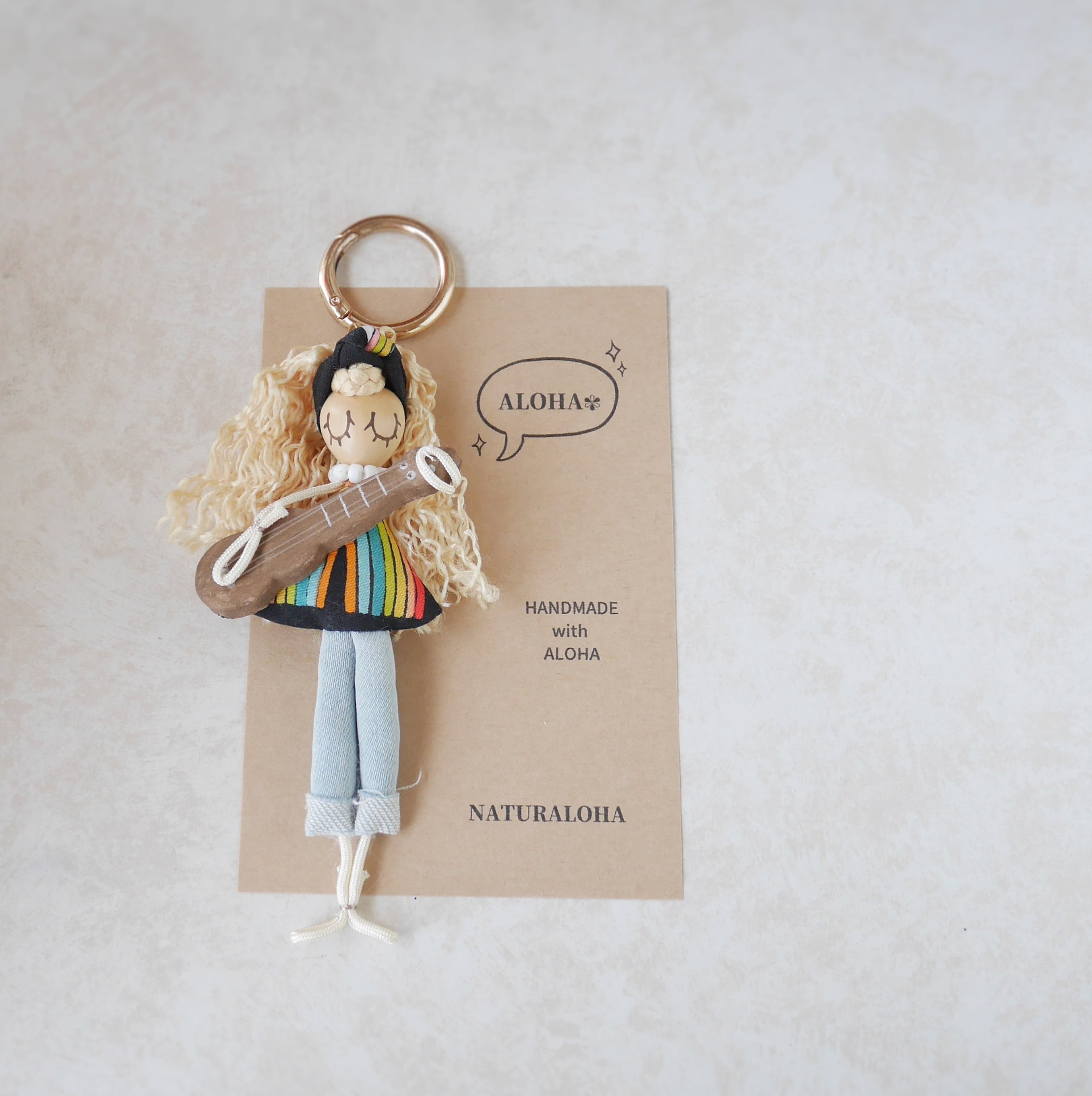 カラフルで手作りならではの温かい雰囲気。多くの人に愛されるハワイアンカルチャー「ウクレレ」&「ハワイアンミュージック」をいつも身近に感じていただけるドールチャームです。