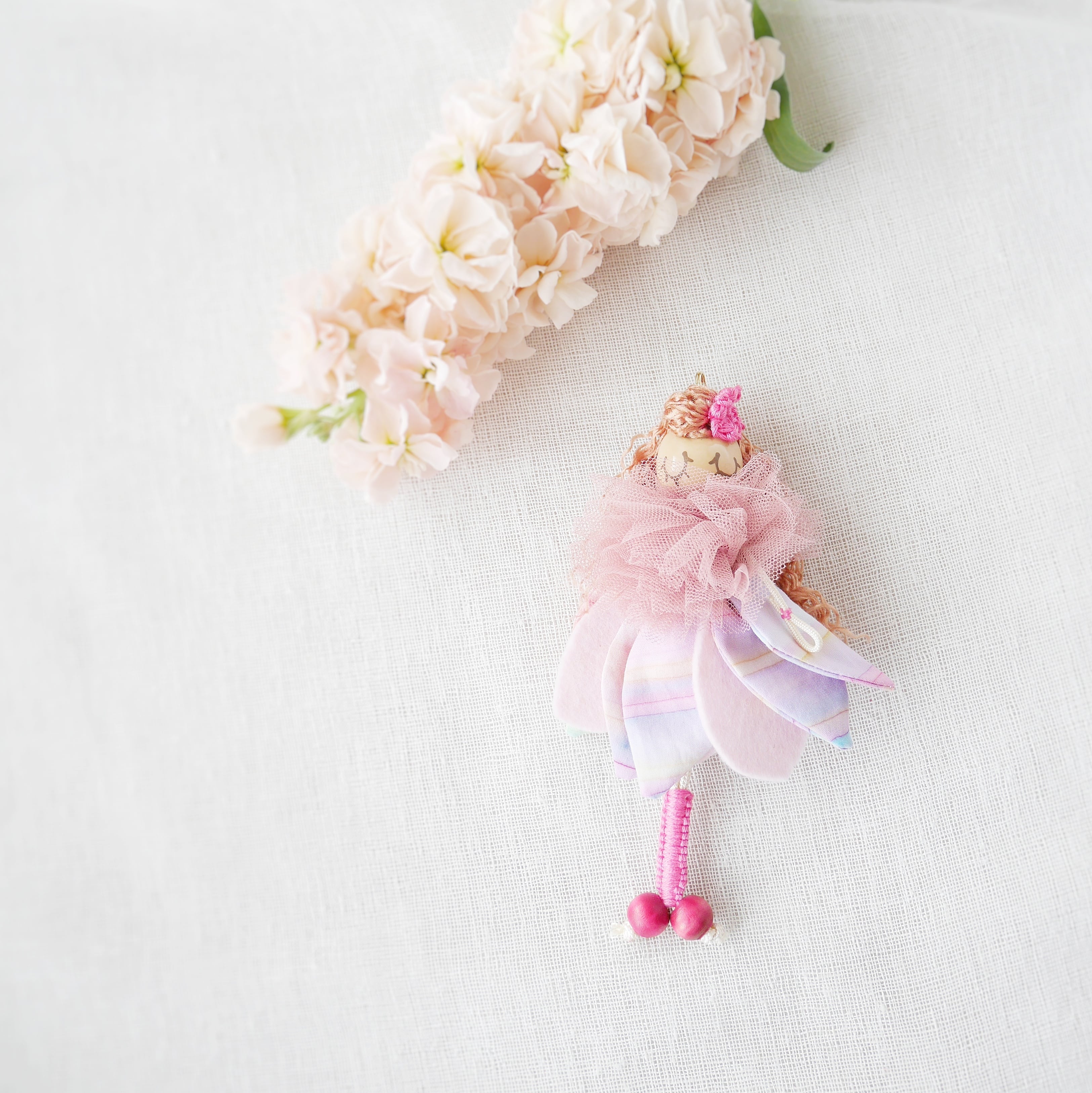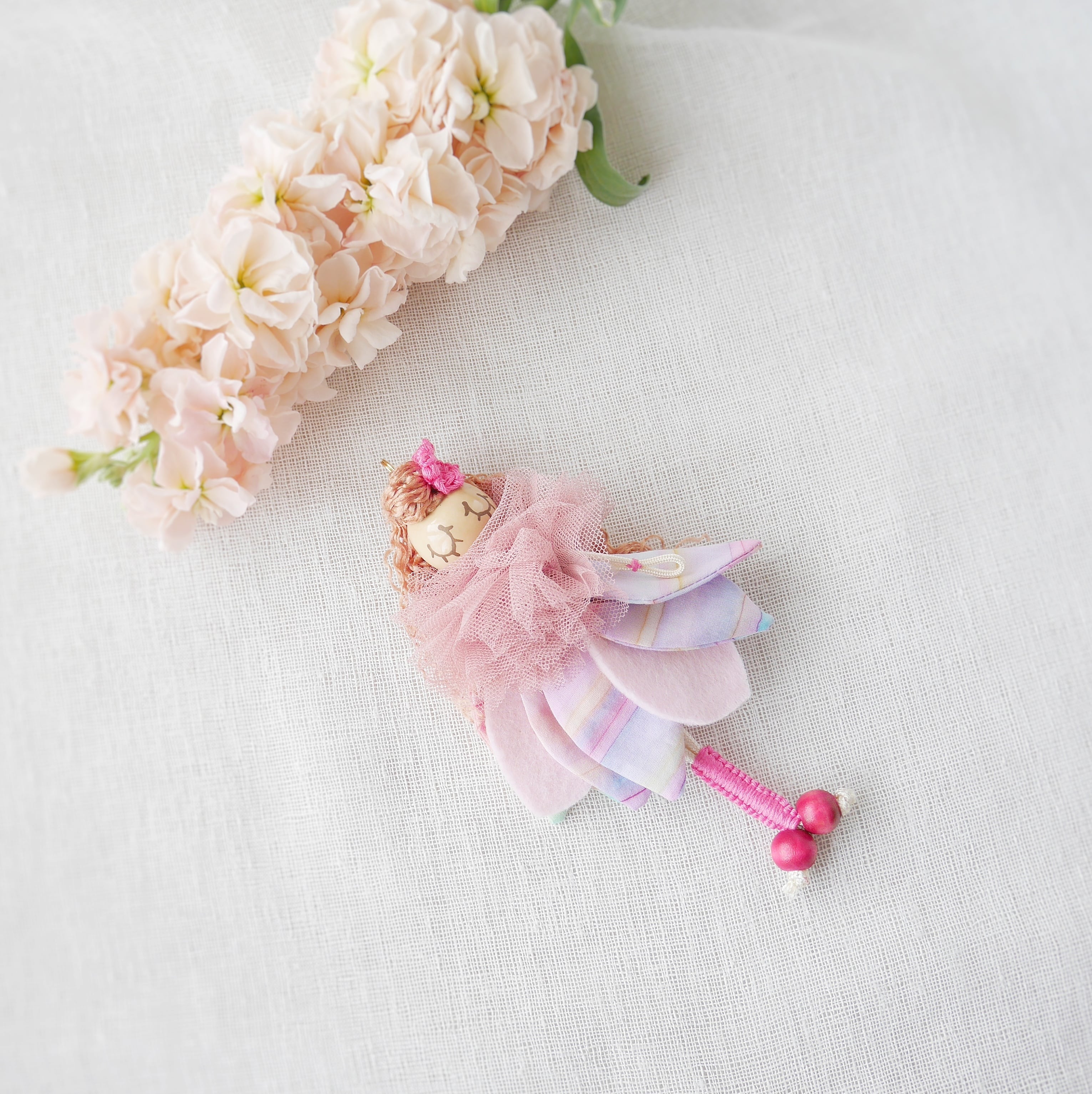 *ハンドクラフトのため、花びらの表情、纏うバランスなど、ひとつひとつ異なります。あなただけの妖精との出会いをお楽しみください*