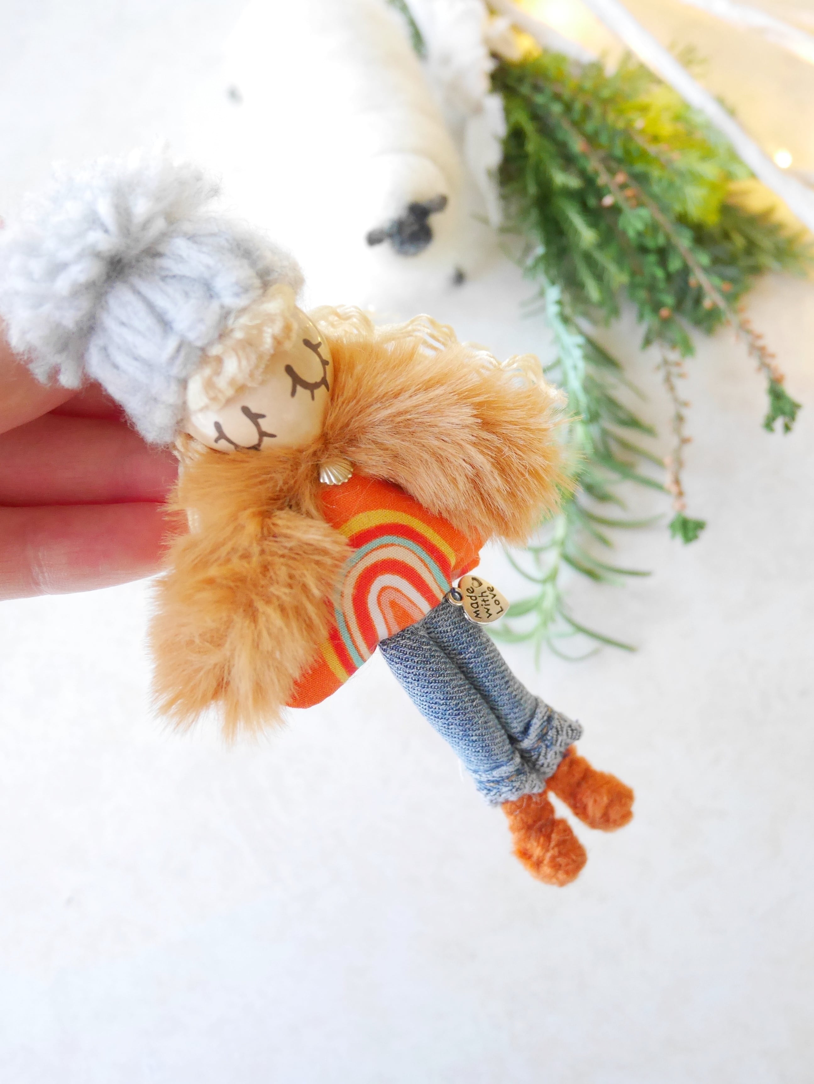 ふわふわのボリューム袖はエコファー。NATURALOHAが大好きな虹の柄もポイントです。ビビットなオレンジで元気いっぱいのドール。シェルモチーフの首飾りが海好き&ハワイ好きにはきゅんとするアクセントに。